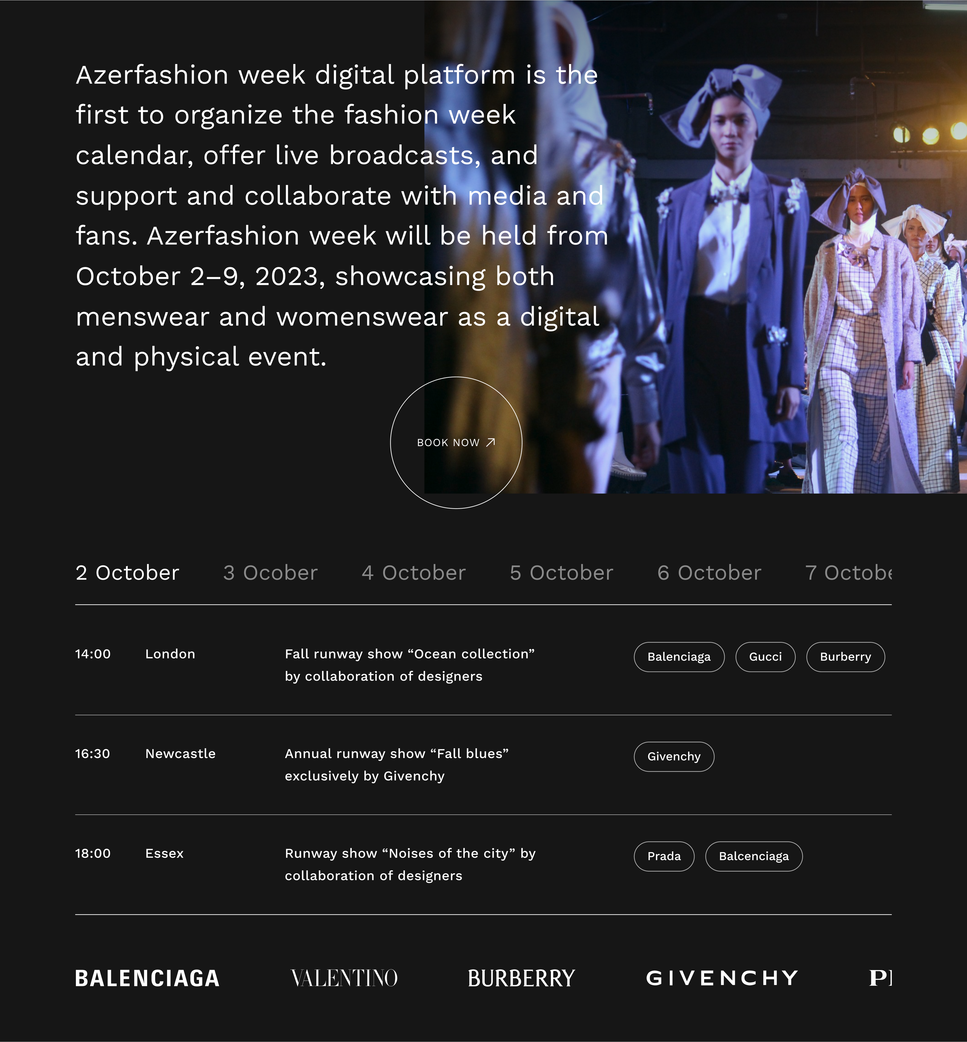 The challenge was to create a digital experience from scratch that would engage visitors and convey the brand’s focus on luxury, freedom of expression, and innovation in fashion. The website needed to set the tone for Azerfashion Week’s digital presence and be both visually stunning and functional.
