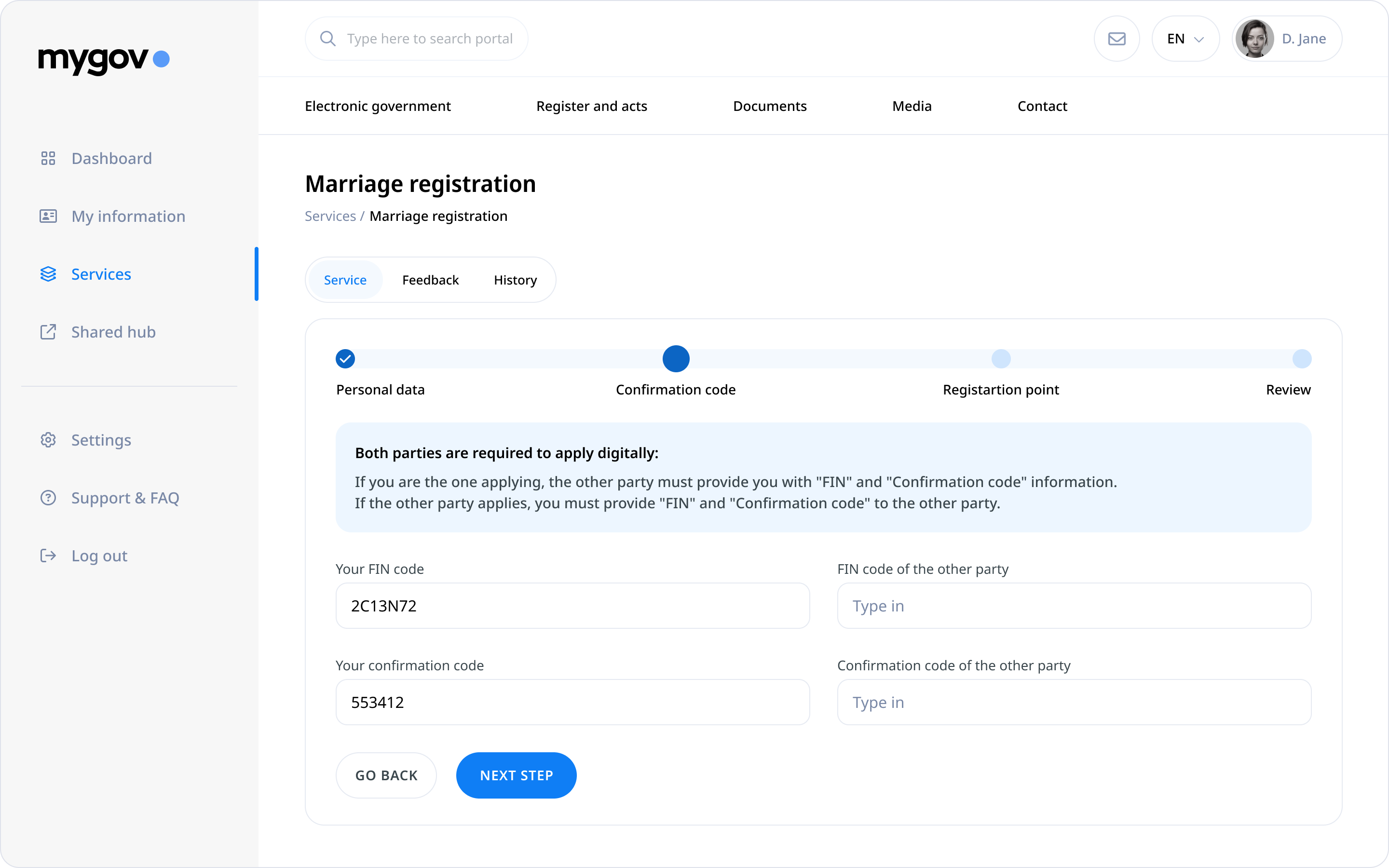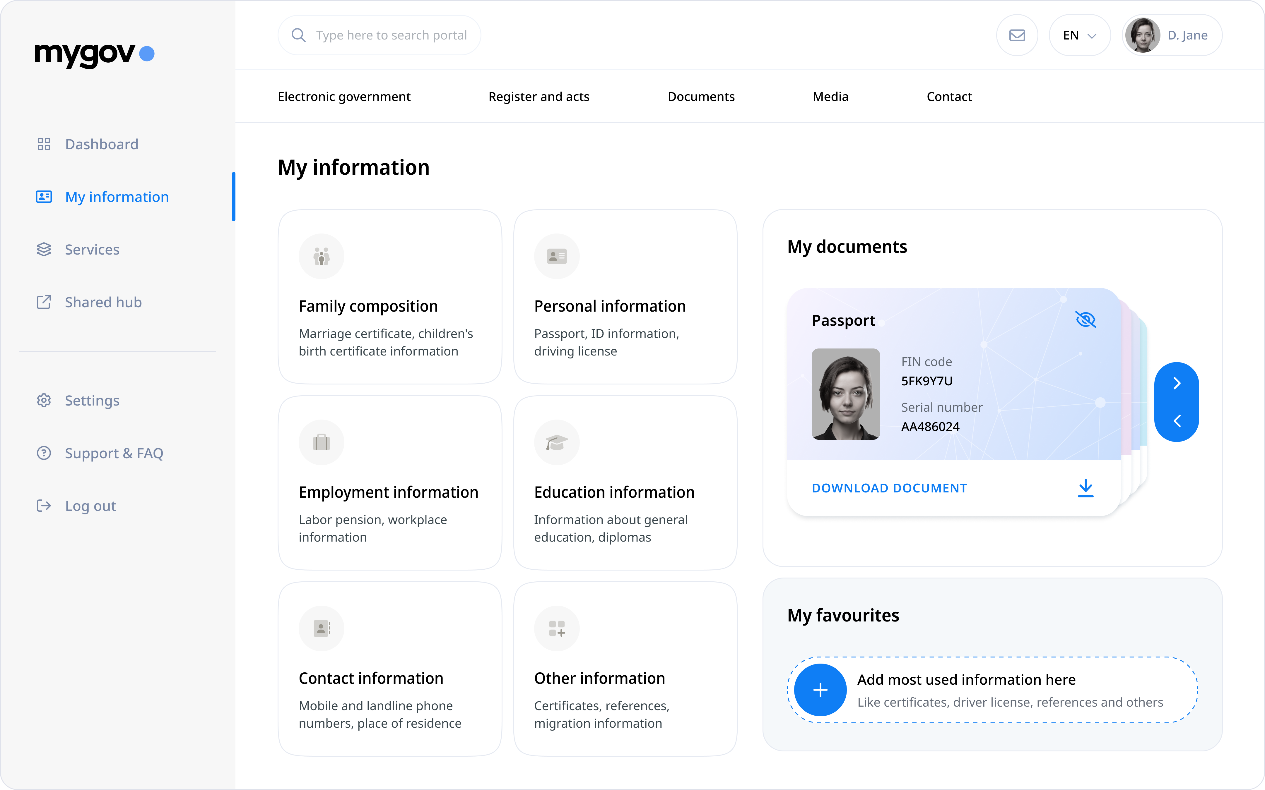 Redesigned dashboard to access government services