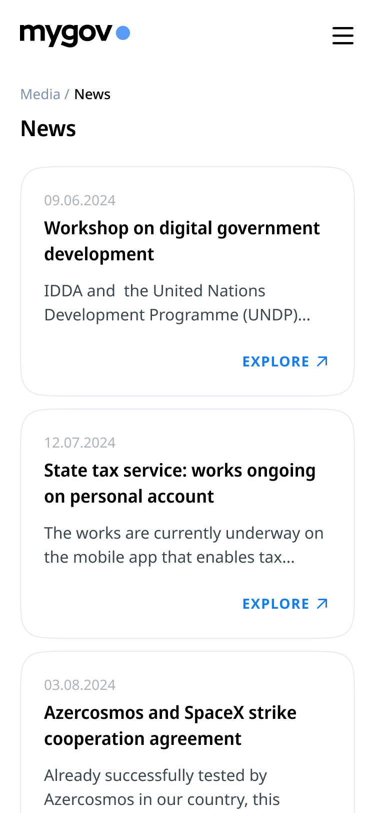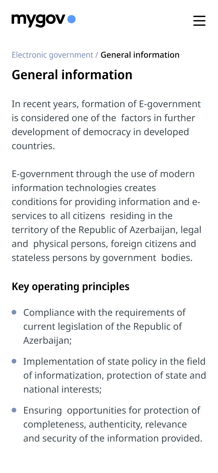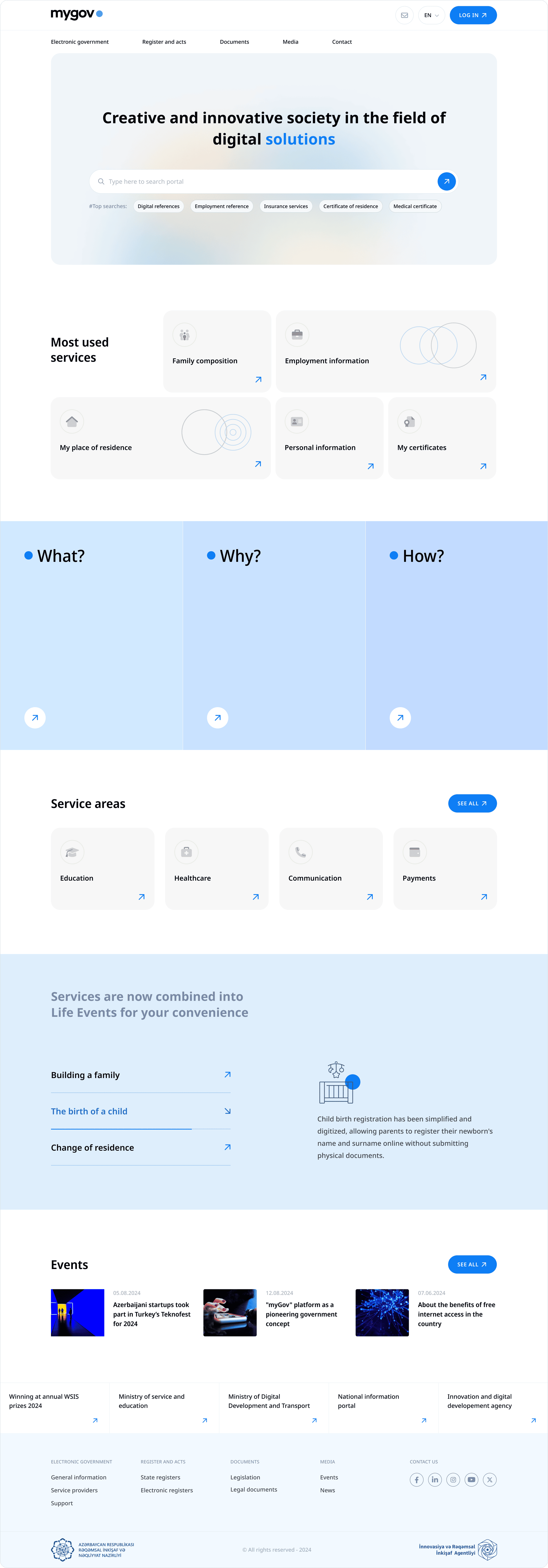 The goal of the MyGov website redesign was to establish a clear, accessible, and trustworthy digital presence for Azerbaijan’s national e-service ecosystem. Acting as the public gateway to the MyGov platform, the website needed to support millions of users in quickly understanding available services, navigating government processes, and accessing key resources. The design strategy emphasized transparency, simplicity, and accessibility—aligned with global public-sector best practices, including GDS guidelines and WCAG 2.1 compliance..